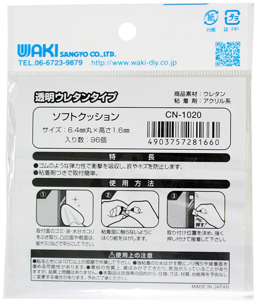 新品 和気産業 ソフトクッション 透明 丸型6.4mm 傷防止 衝撃 透明ウレタン CN-1020 96個入