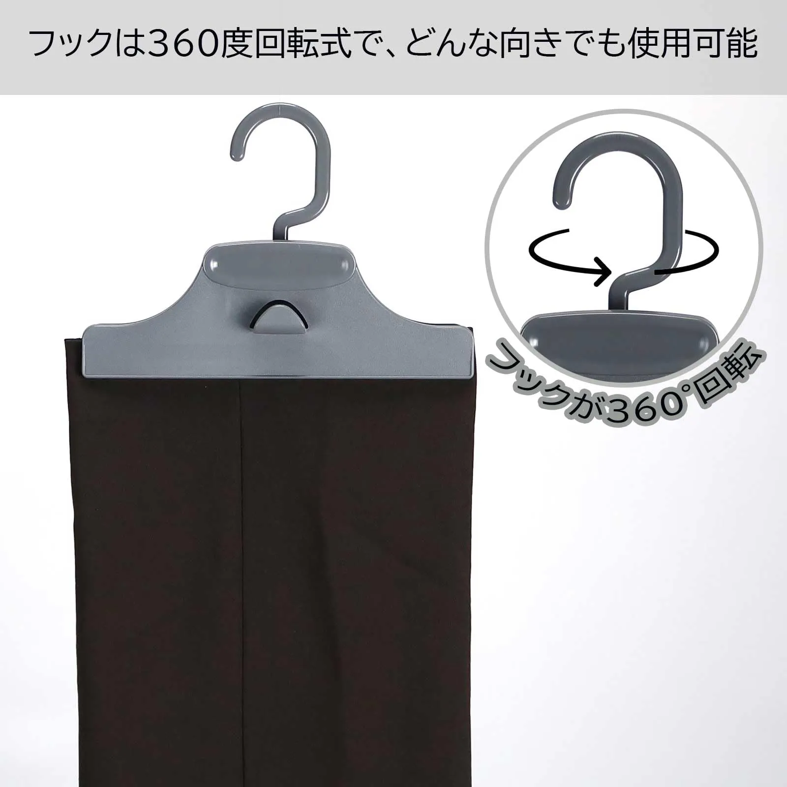 フック部分は360度回転するので掛ける向きを選ばずご使用いただけます。