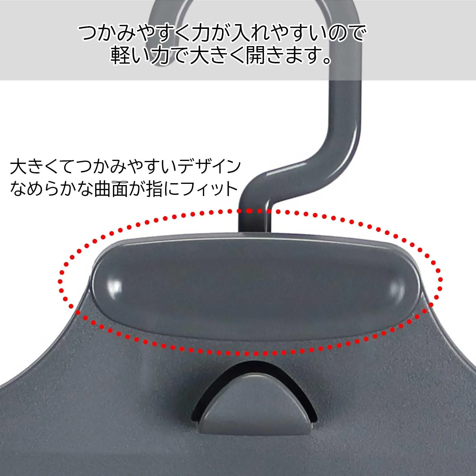 つかみやすく力が入れやすいので軽い力で大きく開きます。