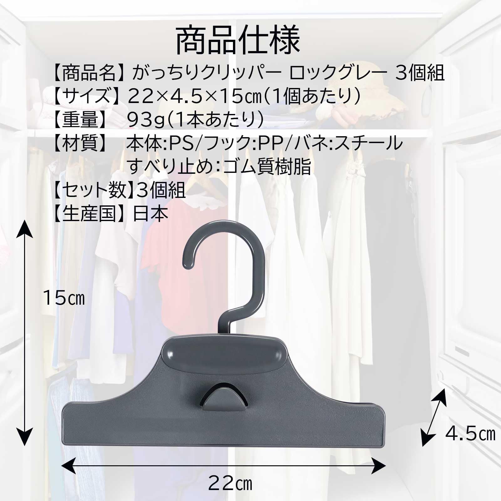 挟む部分にはゴム質樹脂のすべり止め付きで衣類をしっかりホールド。