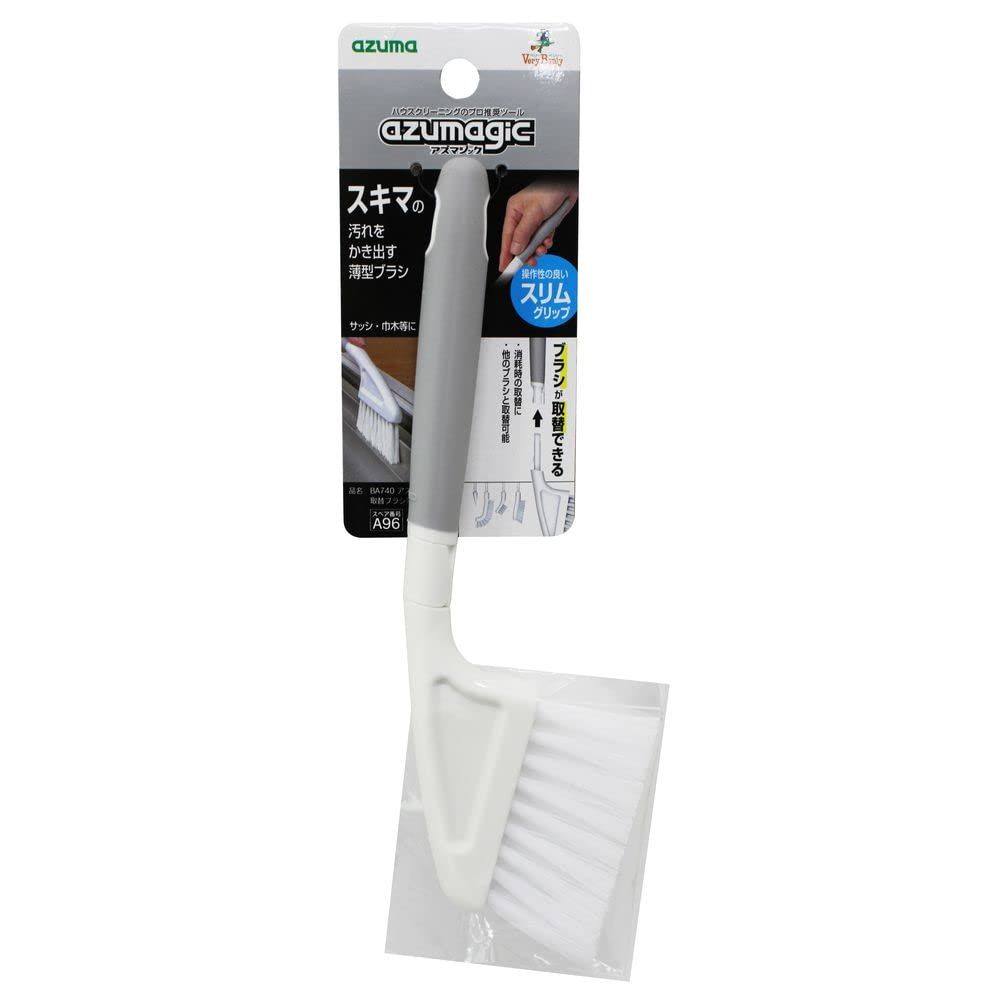 アズマ工業のハウスクリーニングのプロが推奨しているシリーズ「アズマジック」。 スキマ・溝・角の汚れをスッキリかき出す薄型ブラシ。サッシレール・浴室ドアの通気口・巾木等のお掃除に。 ブラシが傷んでしまった時、他のブラシを使いたい時には、ブラシ部分を別売のスペアブラシやスクレーパーに取り替えて使用できます。 スペア番号A96