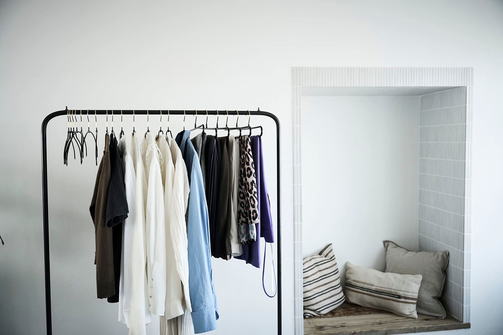 [ハンガーにお洋服をかけたら肩の部分が型崩れしてしまったなどの苦い経験から、愛用ブランドのMAWAハンガーから婦人服専用ハンガーが欲しいと以前から思っていました。服のサイズはメンズとレディースで違うのにハンガーはなぜか大抵1サイズしかありません。ジャストフィットハンガーはほとんどの服をカバーできるレギュラーサイズに加え、小さめの婦人服に適したショートサイズを作りました。-小山田早織-]