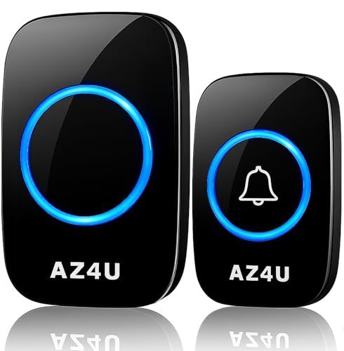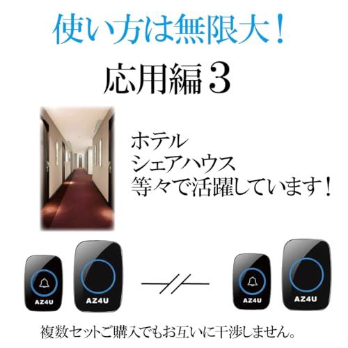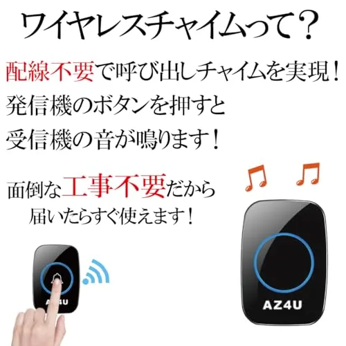 AZ4U ワイヤレスチャイム インターホン 電池式 ドアベルキット 技適マーク取得済み 工事不要 防水 玄関 介護 呼び出し 60種類のメロディ 4段階音量調整 ホワイト (ブラック, 発信機1個 受信機1個)pms