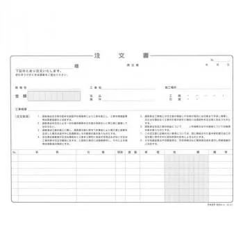 この製品はB5ヨコ型の3枚複写で、工事関係の所要事項や施行中の不手際を未然に防ぐための注文条項等を簡潔に記載した元請・下請間相互の建設業者用フォームです。ノーカーボンタイプなので手が汚れません。
