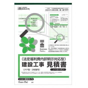 商品名:日本法令 建設 39-7N/法定福利費内訳明示対応型建設工事見積書