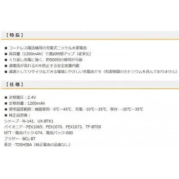 商品名:OHM コードレス電話機用充電池 高容量タイプ TEL-B75