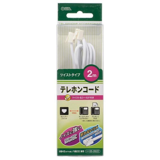 商品名:OHM テレホンコード ツイストタイプ 2m TEL-C2622T