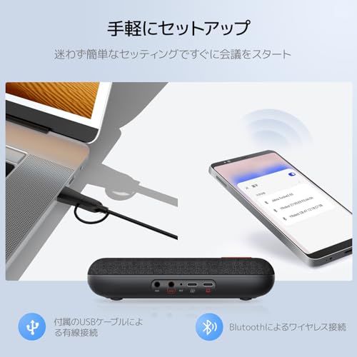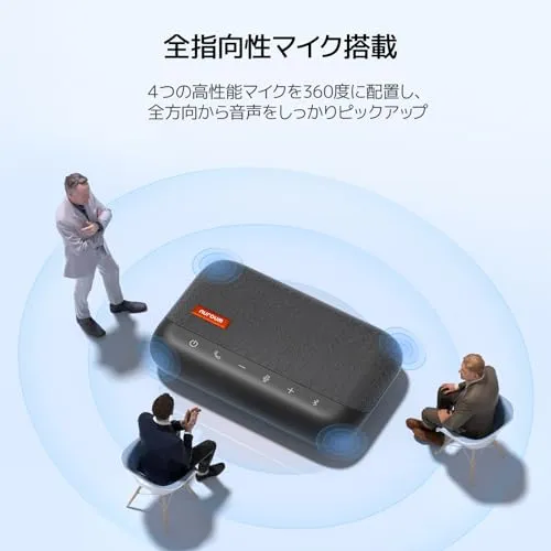 「360集音マイク搭載・会議用マイクスピーカー」4つの全指向性マイクが、マイクの角度や向きに関わらず、4メートル内に360全方位からの音声をしっかりと集音可能です。Web会議の場合、中央に無指向性マイクが搭載された本製品を設置すると、集音半径4M以内の参加者全員の声をまんべんなく伝達可能です。スピーカーと集音マイクをコンパクトな一台に設置したNuroum A15が、複数の人がハンズフリーで会話できるため生産的チームにぴったりで、1対1の個人のWeb会議でもおすすめです。