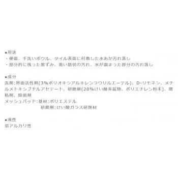 粒状洗剤と、とう器用メッシュパッドのダブル効果で、とう器製品の水あか、カルキ、黒ずみ汚れをすばやく落し、新品の輝きがよみがえります。