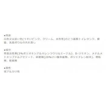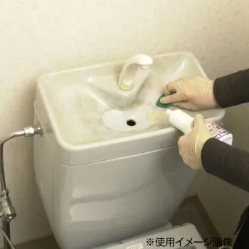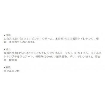 白色または淡い色(うすいピンクや水色等)のとう器製トイレタンク、便器、洗面ボウルに付いたガンコな水あか・わじみ汚れをキレイに落します。広い面の洗浄よりは部分的な洗浄に適しています。