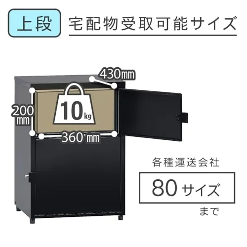 【上段:受取可能サイズ】W360D430H200mm、10kgまでの荷物(主要運送会社の80サイズ対応)が受取可