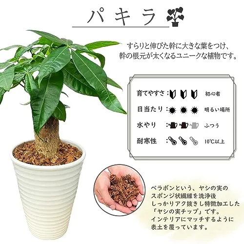 観葉植物:パキラの木陶器鉢植え、セット品:育て方のしおり