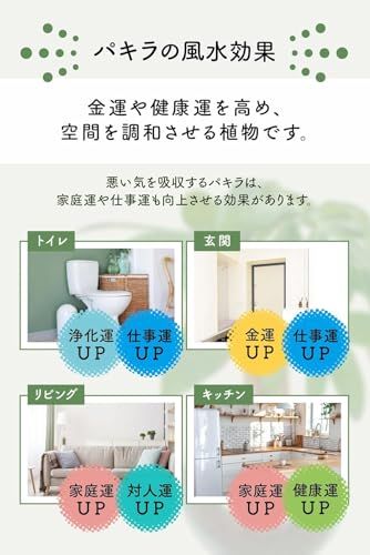 【金運アップ・風水に良い観葉植物】パキラは、古くから「金運を呼ぶ木」として風水的にも非常に縁起が良い観葉植物です。幹が上に伸び、葉が五芒星のように広がる姿は、「運をつかむ」「エネルギーを集める」といわれ、仕事運・金運アップの象徴として親しまれています。陶器鉢入りの本物のパキラは、風水インテリアとしてもおすすめ。玄関やデスクの上など、運気の入口に置くと幸運を呼び込みます。
