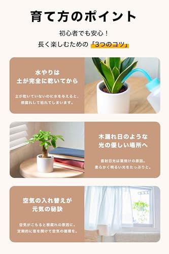 【室内で簡単に育つ小型パキラ】パキラは丈夫で環境適応力が高く、直射日光を避けた明るい室内で元気に育ちます。毎日の水やりも必要なく、初心者の方でも簡単に育てられる本物の観葉植物