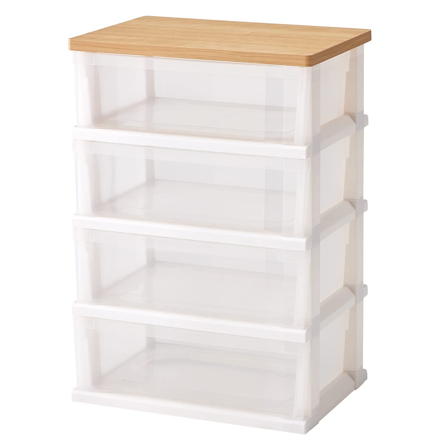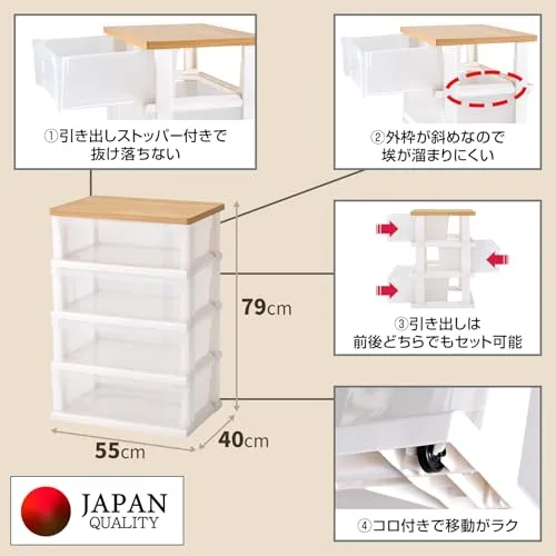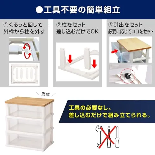 木製天板は丈夫なハニカミ構造、引出しの脱落を防止する引出ストッパー付き