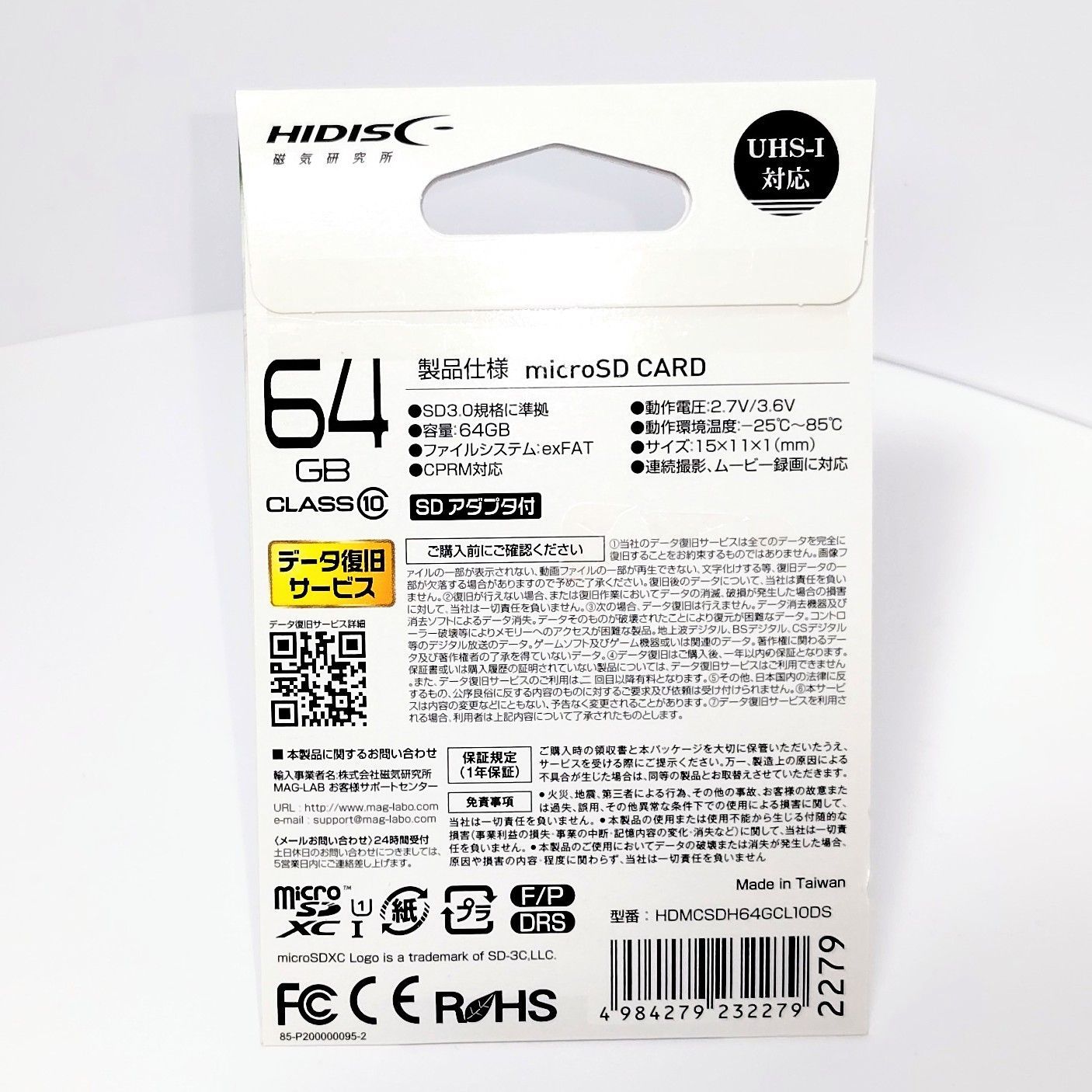 HIDISC HDMCSDH64GCL10DS microSDXCカード 64GB 磁気研究所