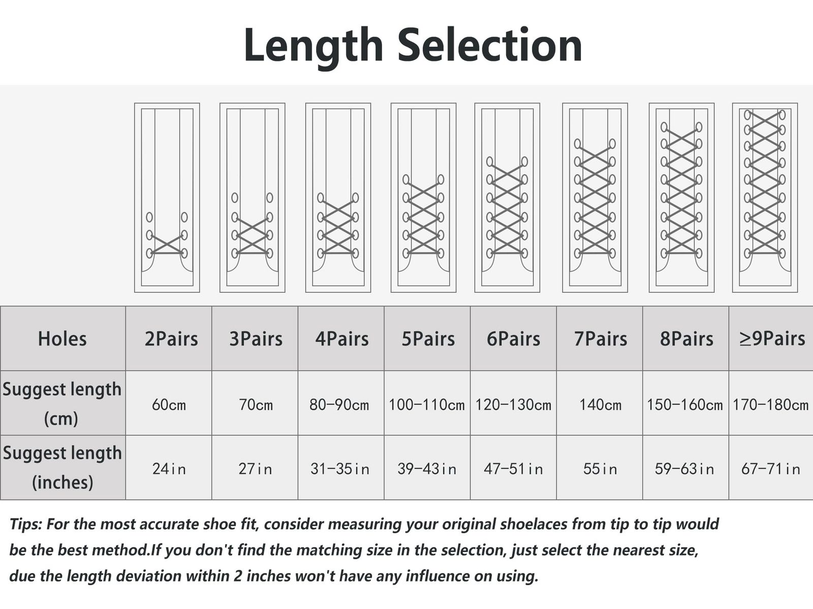 異なる靴ひもの長さがあり、様々な靴に適した。