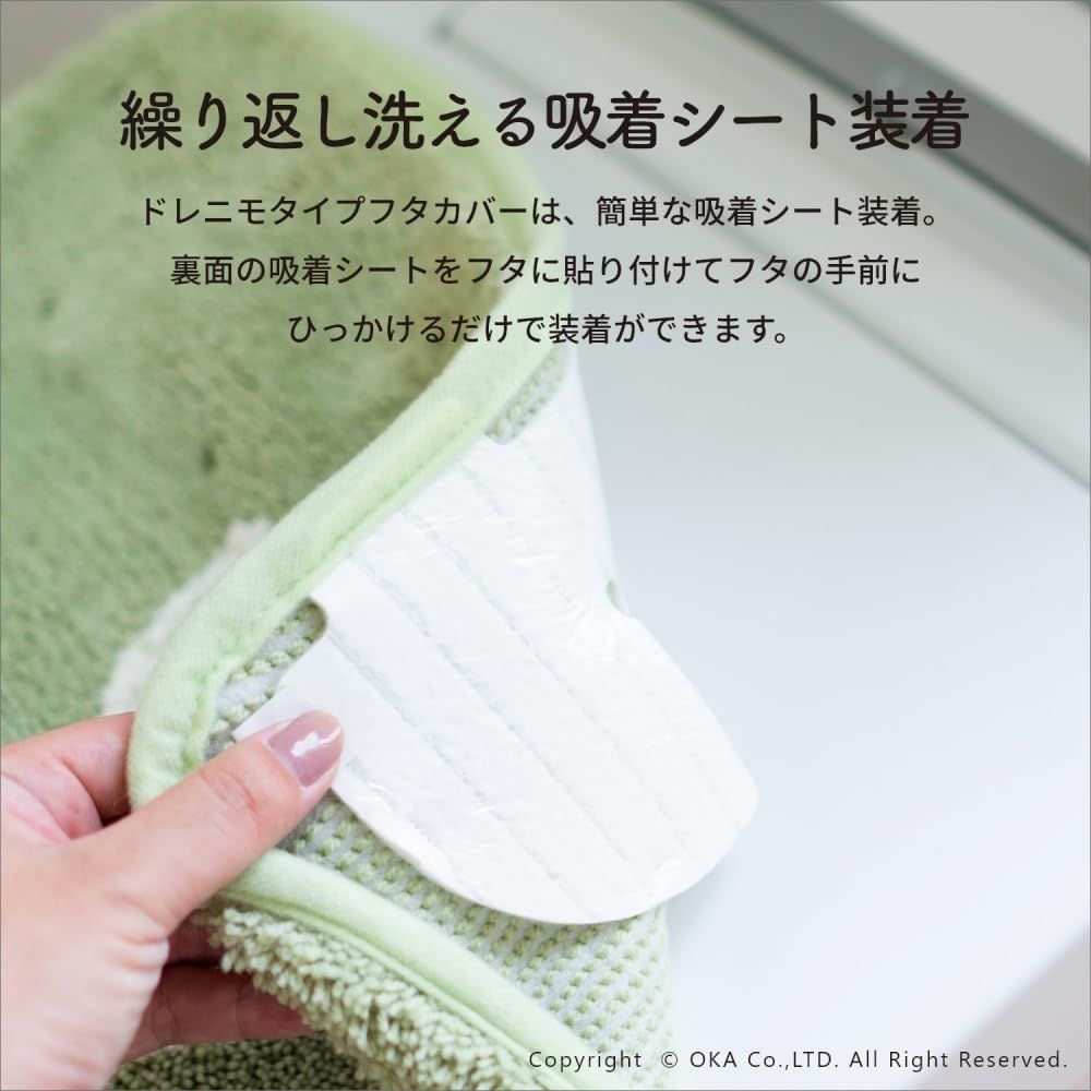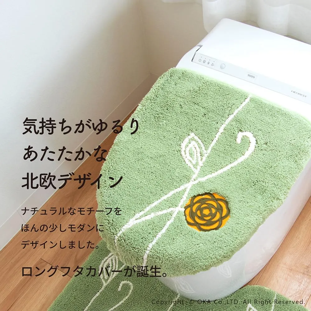 あたたかく、心地よく、自宅で過ごす時間がほんの少し、素敵になりそうなゆったりとした雰囲気の「エトフ」シリーズにロングサイズのフタカバーが誕生。長めのトイレフタにも対応できるサイズ感になっています。カバーは毛足は短め、目のつまったしっかりしたカバーになっています。ゆったりと伸びたツルや葉はポリエステルとふんわりとしたやわらかな素材を使い、 細部までのこだわりが感じられます。アップリケ部分はコントラストの綺麗なフェルトを使用し、マットを彩るアクセントになっています。吸着シートで貼り付けるタイプで、見た目がスマートで取付けもピタッと貼るだけで簡単、スッキリとした見た目になりました。カラーは毎日にそっと彩りを添えるカラーバリエーションです。