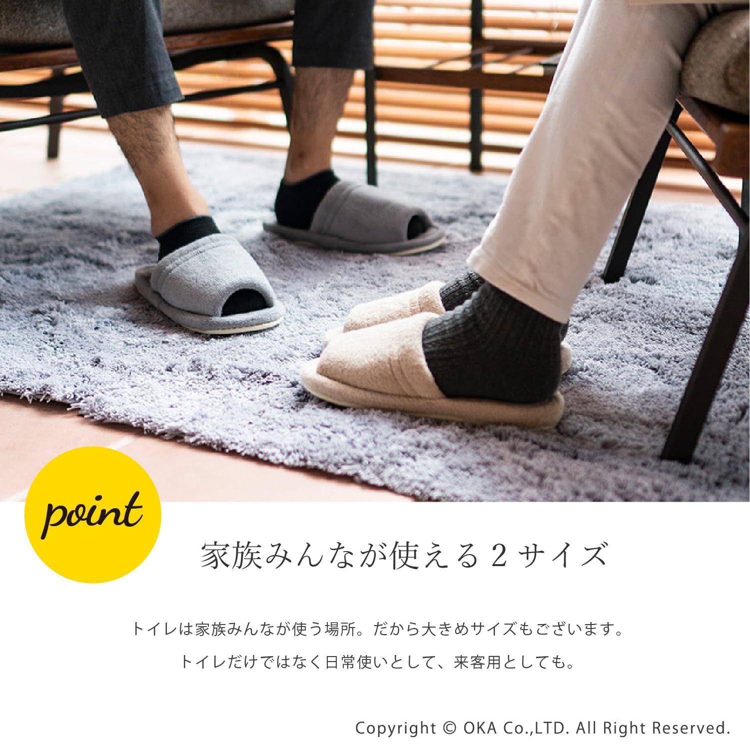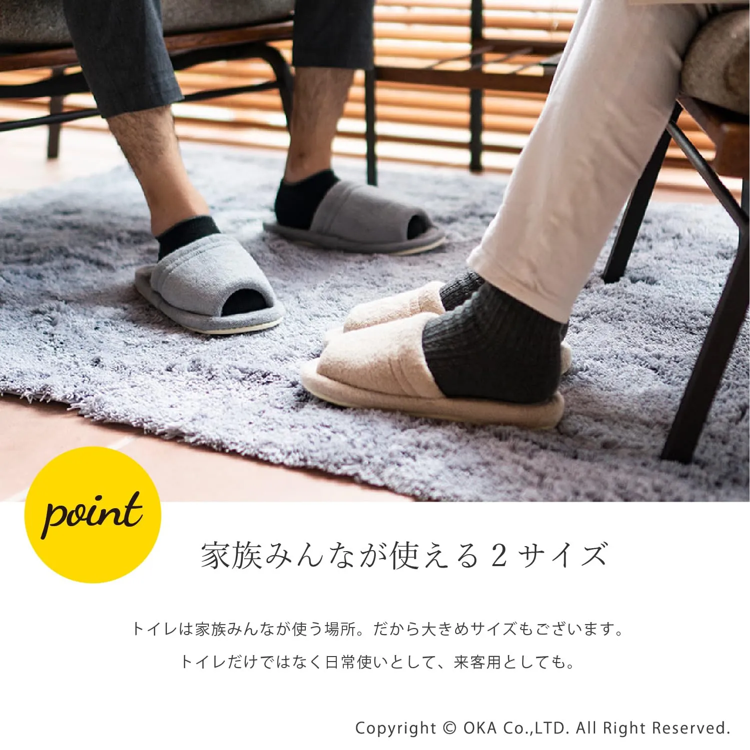 タオル地のトイレスリッパは素足で履いて欲しいほど気持ちよい肌ざわり。しっかりとしたソールでトイレだけでなく、お部屋履き用としてもお使い頂けます。
