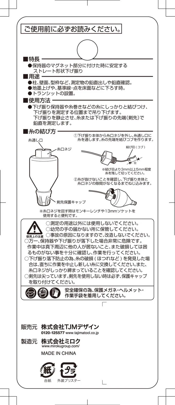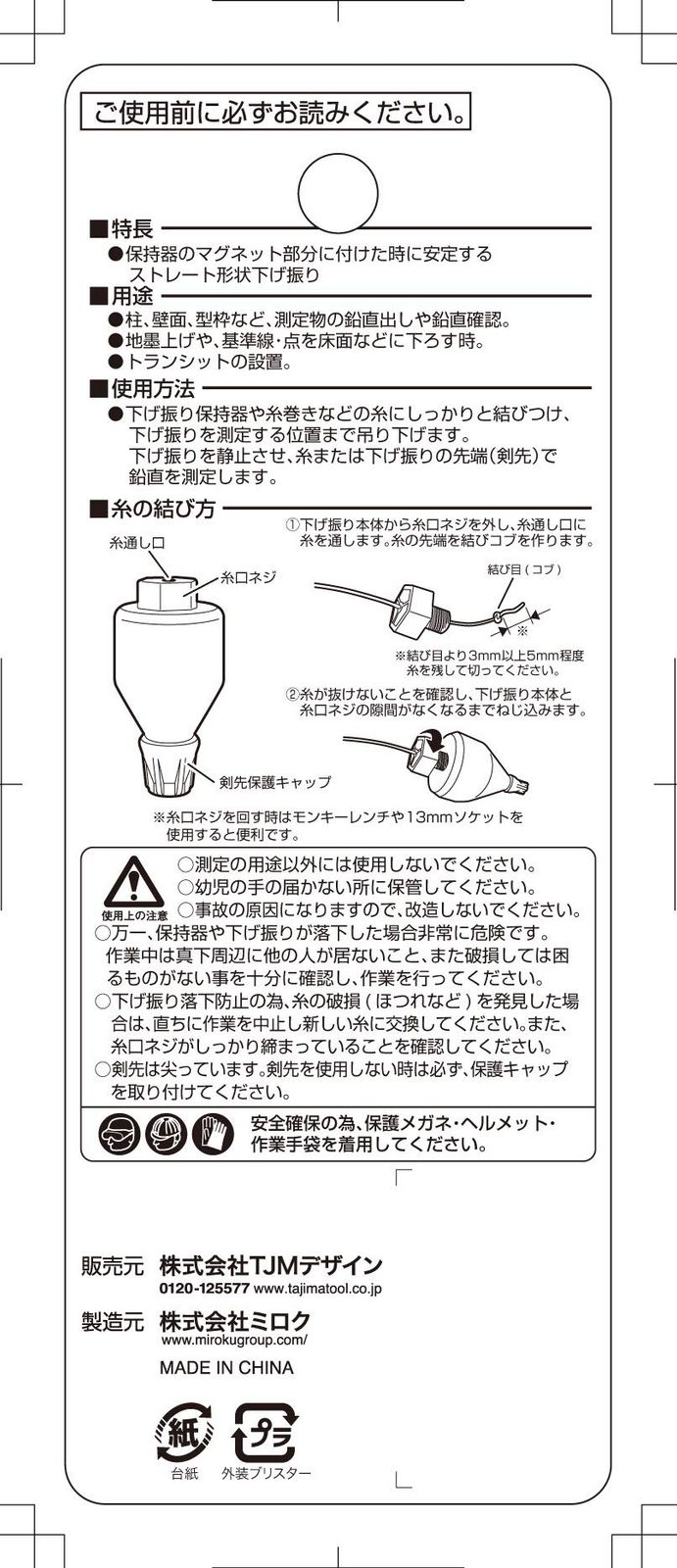 下げ振り。