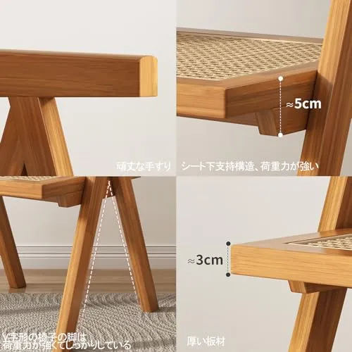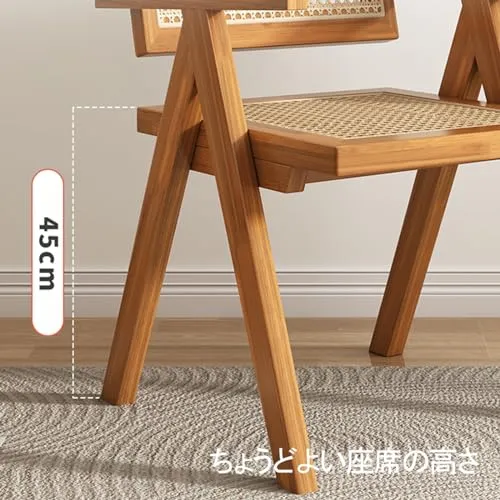 爽やかな籐編みは、ほんのりと黄ばんだ無垢材と相まって、温かみのある居心地の良い雰囲気を醸し出します。