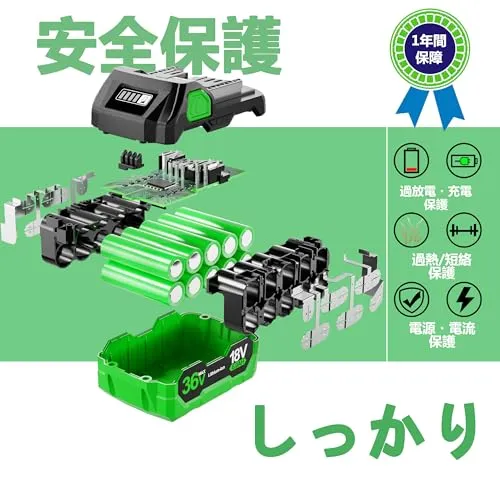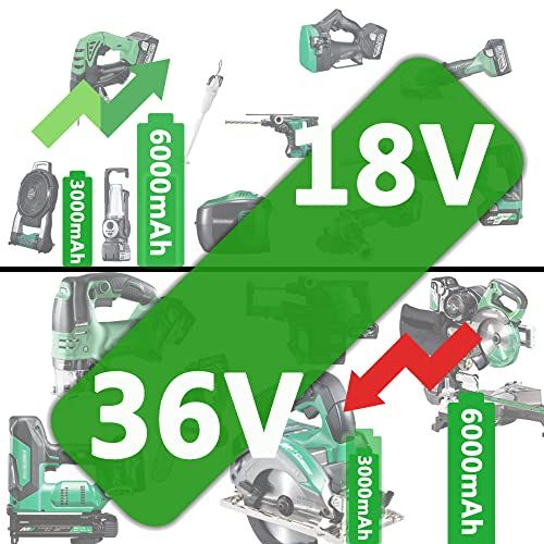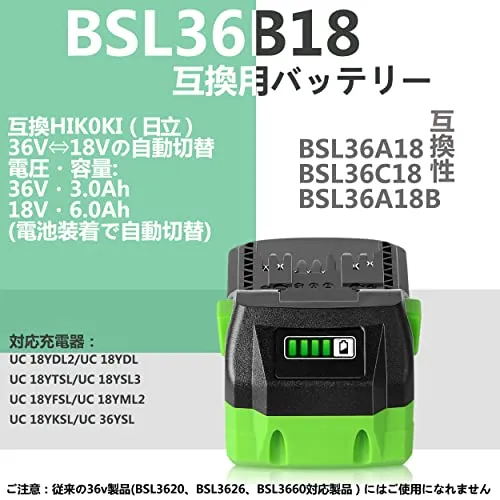 【相性抜群】ハイコーキ/HiKOKI/日立工機の36Vマルチボルトシリーズと従来の18V製品を互換できます(*総計114モデル)。純正充電器対応。※電池装着で自動切替、従来の36v製品(BSL3620、BSL3626、BSL3660対応製品)にはご使用になれません。
