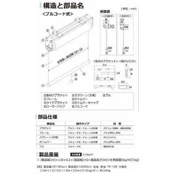 商品名:タチカワ ファーステージ ロールスクリーン オフホワイト 幅110×高さ200cm プルコード式 TR-1001 スノー