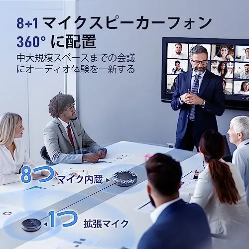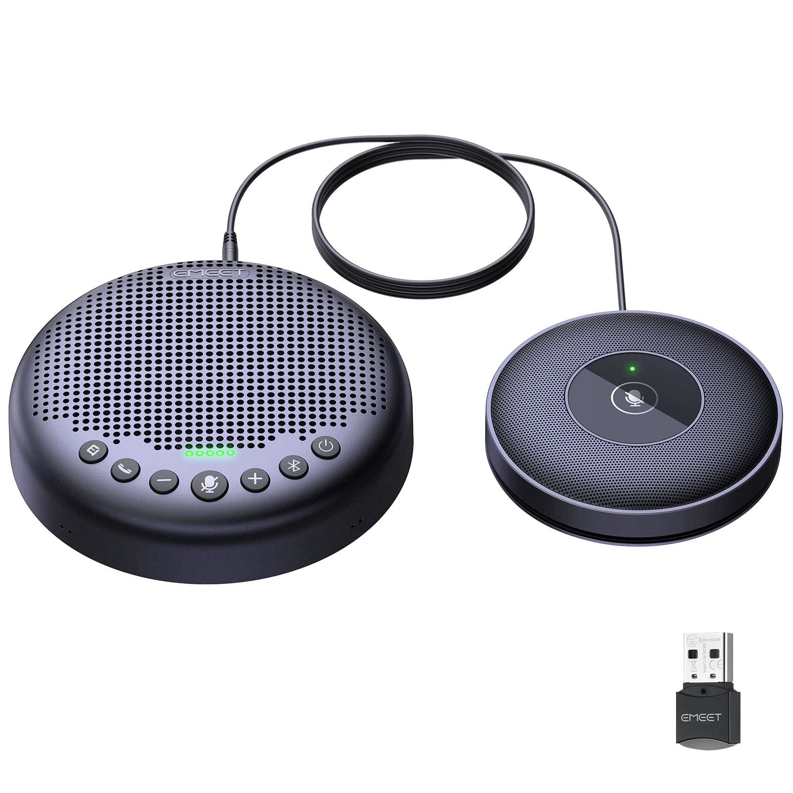 EMEET Luna Plus Kit スピーカーフォン 8マイク1拡張マイク 会議用 マイクスピーカー 360音声ピックアップ エコー・ノイズのキャンセリング 14人まで対応 web会議マイク USB C/Bluetooth5.3/Dongle対応 連結機能 双方向通話 集音マイク オンライン会議・テレワーク・在宅勤務 Skype/Zoom/Teams/通話アプリ対応 国内発送