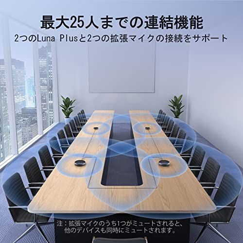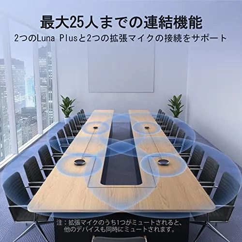 【連結機能&大規模な会議も対応】EMEET Luna Plus Kit会議用スピーカーは、連結機能により、さまざまなシーンに対応したカバー範囲の拡張が可能です。EMEETの専用連結ケーブルを使って会議用スピーカーフォンを接続し、25人まで参加可能な会議をサポートできます。会議用スピーカーの有線接続技術は、無線接続とは異なり、安定した接続を保証し、干渉のない通話を実現します。