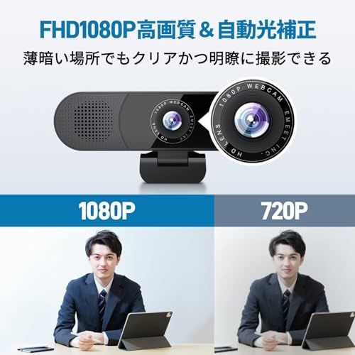 【光量自動調整機能】EMEET C980 Pro ウェブカメラは、光量の自動調整機能を搭載し、薄暗い場所やちらつく光の中でも、鮮明で高品質な動画を提供します。オンライン会議、家族通話やライブ配信など、あらゆるシーンで活躍するPCカメラです。コンパクトに折りたたむことができ、持ち運びにも便利です。
