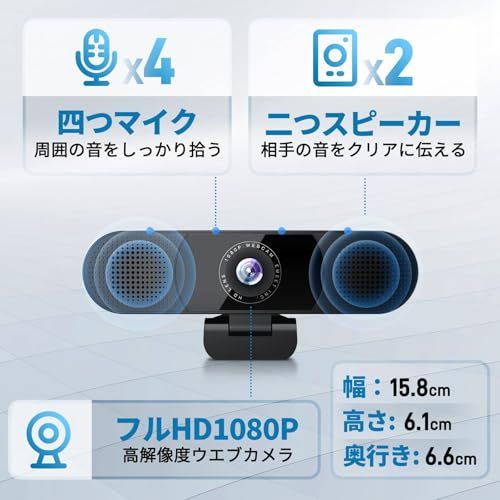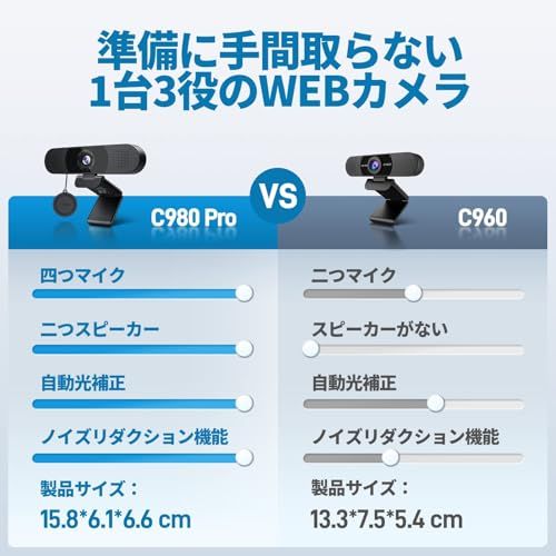WEBカメラ EMEET C980pro ウェブカメラ 1台3役 1080P HD 四つ360集音AIマイク 二つスピーカー内蔵 パソコンカメラ USB接続簡単 SkypeカメラWEB会議用 ビデオ通話 生放送 目隠しカバー付き YOUTUBE Windows/Mac対応 国内発送