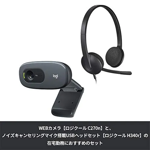 【ロジクールの定番セット】Webカメラ C270nとUSBヘッドセット H340rはUSBで繋げるだけですぐに使用開始できます。このWebカメラとヘッドセットのセットで在宅勤務を快適にしましょう。