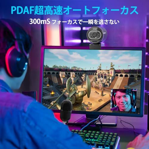 【PDAFオートフォーカス機能、自動光補正】EMEET S600 4k Webカメラは先進的なPDAFオートフォーカス技術を搭載し、約300msで高速かつ正確なフォーカスを可能にします。自動光補正機能を備え、暗い場所や、微光環境下でも明るくてクリアな画像を映し出すことが可能です。画面の明るさやピントの不安定さを心配する必要がなく、常に鮮やかで臨場感のある動画配信と録画が可能です。