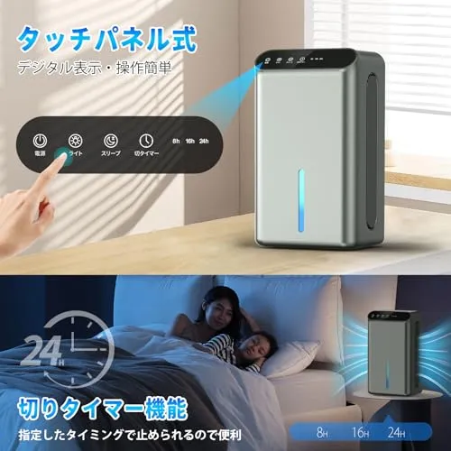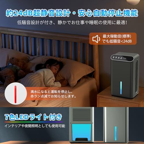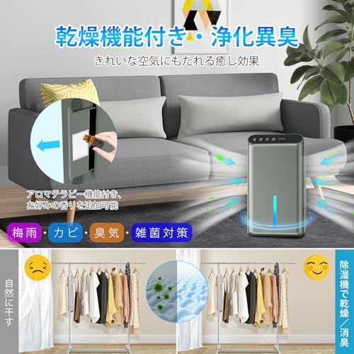【鉄筋15畳 /木造7畳】空気清浄機 衣類乾燥 湿気/梅雨対策 結露/カビ防止 任せモード 満水自動OFF 切タイマー機能 小型 じょしつき コンパクト 7色ライト 静音 省エネ 人気 脱衣所/台所/押入れ/トイレ/クローゼット グレー 国内発送