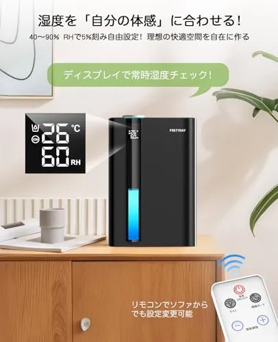 【恒湿モード・LED表示・リモコン操作】除湿機を起動すると、強制的な除湿モードが始まります。5%刻みで4090