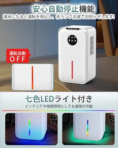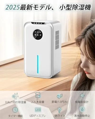 Imspace 除湿機 小型 除湿器 0.8L/日 湿気取り じょしつぎ コンパクト 静音 省工ネ 大容量 2.2L 連続排水 自動停止 タイマー機能 自動除霜機能 スリープ機能 7色LEDライト 湿気 梅雨 カビ 対策 狭所向け クローゼット/下駄箱/洗面台/脱衣所/トイレなどに適用 国内発送