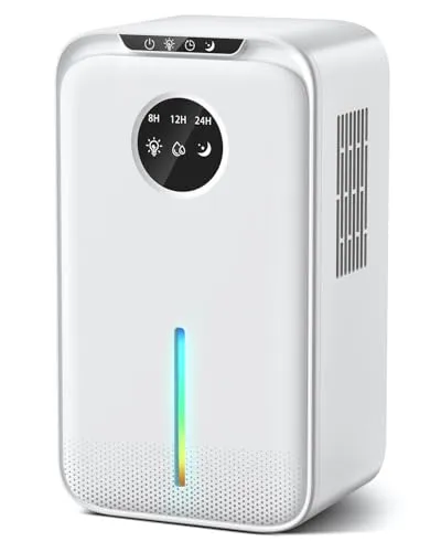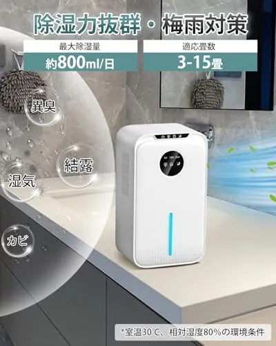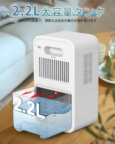 【強力除湿・2200MLの大容量】小型除湿機、革新的な半導体技術、アップグレード吸気口、1日に800mlの除湿能力!(湿度80%、温度30の環境条件でテスト)強力な除湿能力で、ダ二、結露、異臭、カビなどの湿気問題を解決し、快適で清潔な空間を作り出します。本除湿機には2.2リットルの大容量透明水箱が付属しており、除湿量が一目で分かります! 2.2Lの大容量で、頻繁な水排出作業の手間が省けます。(ご注意:吸気口を清潔に保ちほこりがなく、ほこりがあると吸気口に詰まりやすく、製品の除湿力が低下する。)
