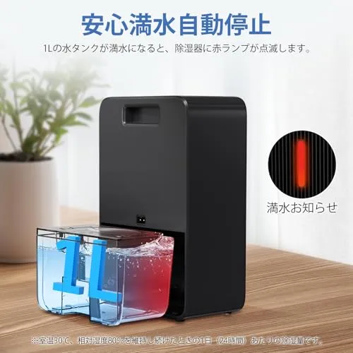 除湿機 小型 除湿器 1000ml大容量 卓上 ぺルチェ式省エネ じょしつき 強力除湿 梅雨/カビ/結露/湿気対策 抗菌フィルタ付き 満水自動停止4/6/8/12/24 H切タイマー 7色ランプ 湿気取り PSE認証取得済み コンパクト ブラック 父 国内発送
