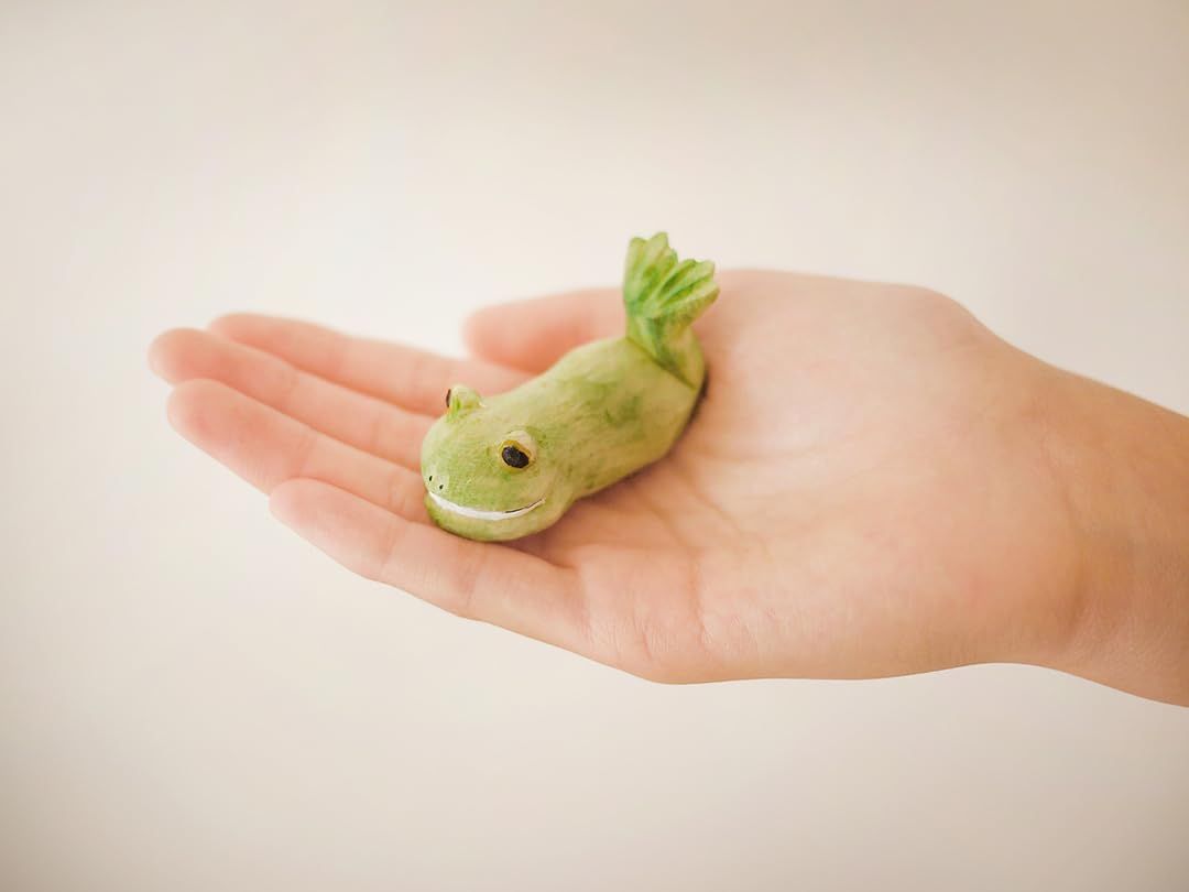 手のひらサイズのキュートなカエルのマスコット。シリーズ初の木製仕様、いつもと少し違うかわいらしさがプラスされました。