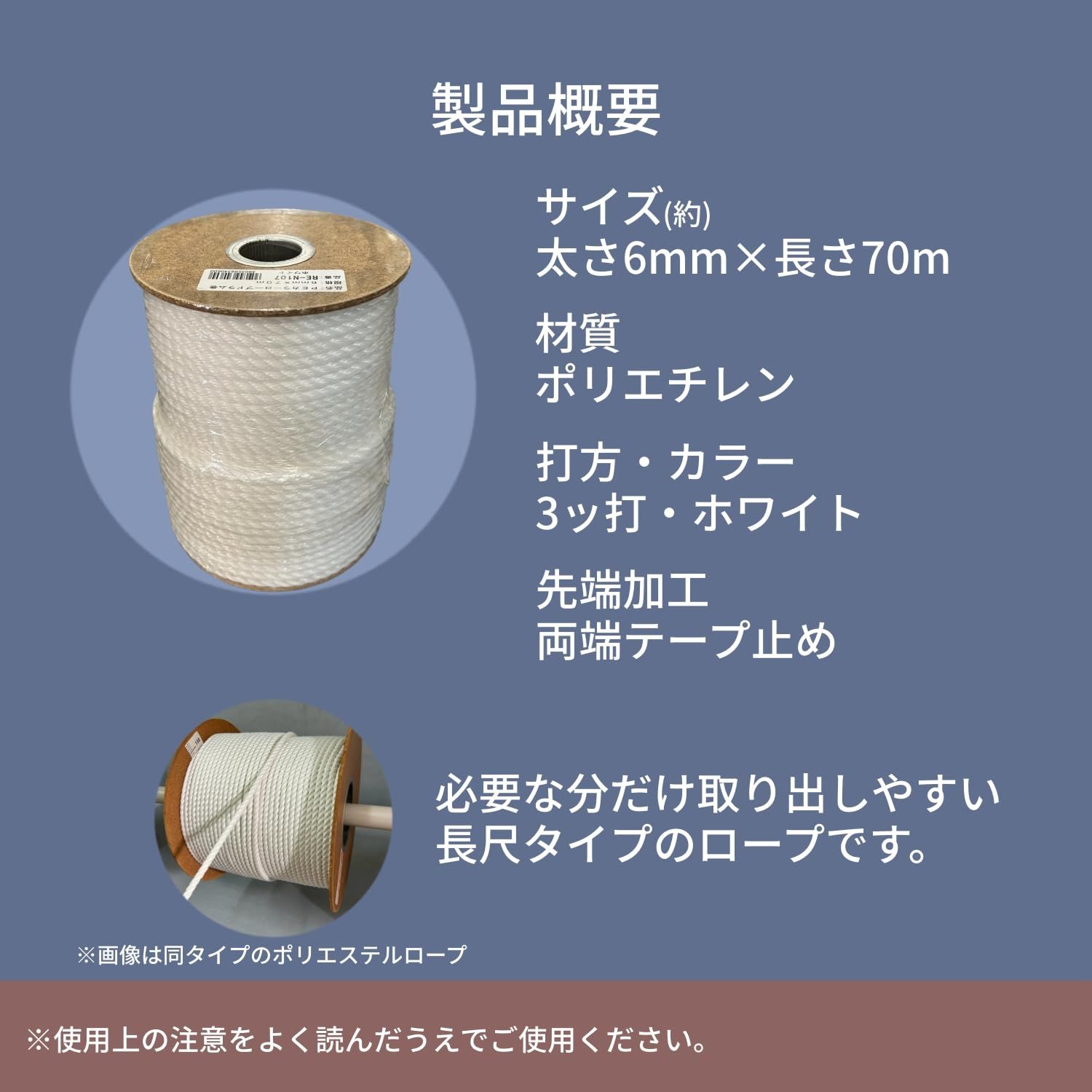 【サイズ】ロープ規格は太さ約6mm×長さ約70mです。お好みの長さにカットしお使いになれます。