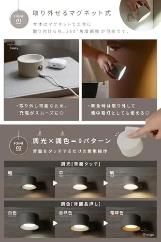 【見た目すっきりタッチ操作】側面や表にボタンのないデザインで、背面にタッチするだけで簡単に調光・調色が可能です。 初めてのブラケットライトをご購入の方も、直感的に操作いただける仕様となっております。 間接照明 壁付け照明など用途は様々。観葉植物や絵画などのスポットライトとしてもどうぞ