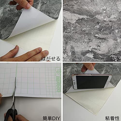 【大理石シール.簡単DIY】大理石壁紙シールの裏面で網格があり測りやすい、任意の大きさにカットして使用することができます、は自粘着型で、粘着力も強くあり施工は楽です。ほんの数ステップ:切り取る、引き裂く、投稿する、皮をむく,初心者でもできる。