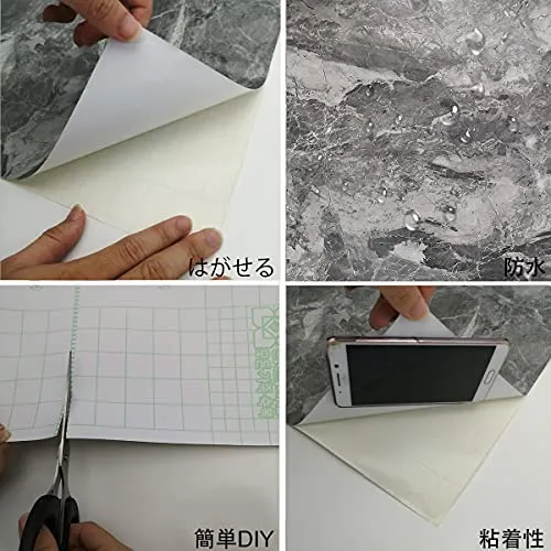 【大理石風シート.粘着性と脱着性】PVC粘着壁紙は貼るだけ模様替え.壁紙を外しても粘着剤が残りません。古い家具をアップグレードするのに最適な方法です。