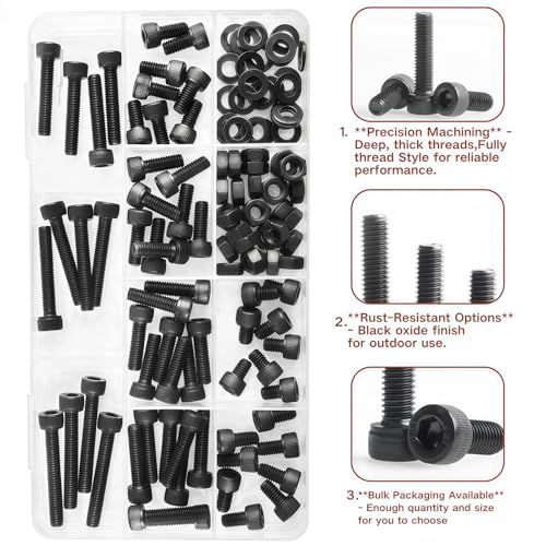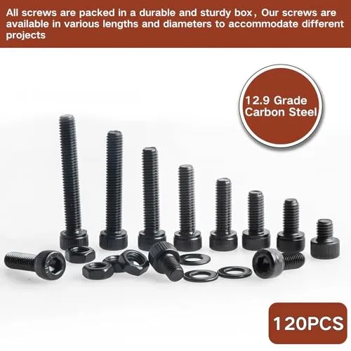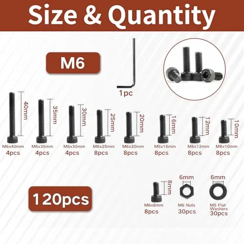 パッケージ内容:120個の黒い六角ソケットヘッドキャップねじナットとワッシャーと1個のブラックアレンキー。サイズはM6x8mm、M6x10mm、M6x12mm、M6x16mm、M6x20mm、M6x25mm、M6x30mm、M6x35mm、M6ブラックナット30個、M6ブラックウォッシュ30個。 ers