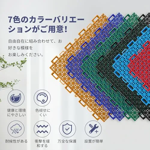 耐久性と耐候性:屋外環境での長期使用を想定し、紫外線や風雨に強い素材を採用。ベランダタイル 屋外なら、色褪せにくく形状も維持し、四季を通じてベランダやガレージの床を保護し続けます。