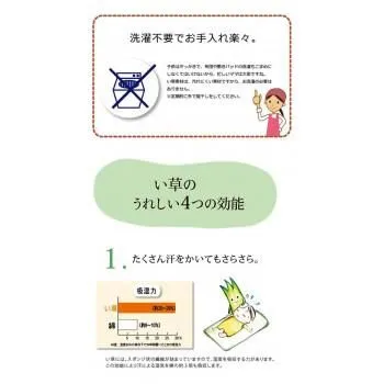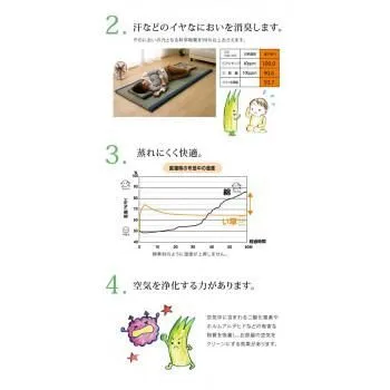 ■イ草表面に青森ヒバ加工を施しています(抗菌・防臭効果)。青森県のヒバの木から抽出した「ヒバ油」をメーカー独自の技術で材料や商品に加工しました。「ヒバ油」には、ヒノキチオールという天然物質としては極めて抗菌性の高い成分が含まれています。