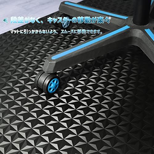 【改善された硬度・ズレない】以前のタイプより硬くなります。耐荷重150kgまで、圧力が直接かからないようにして、マットが緩衝材として床をしかっり保護できます。キャスターから床のへこみ、キズを有効に防ぎます。動くと前後に波打った状態にならない、都度直す不要でズレにくくなります。