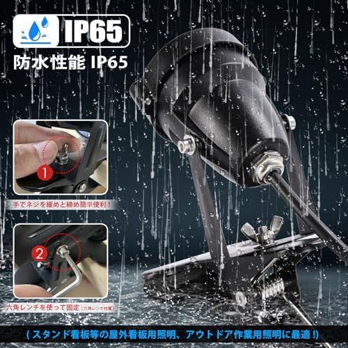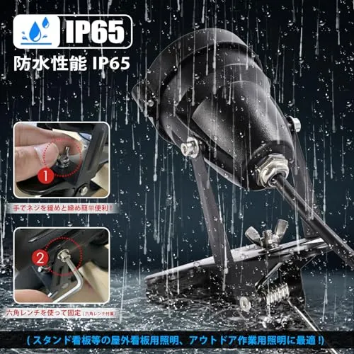 【防雨型・強化材質使用】本商品は屋外防水仕様です※浸水不可。 照射面に強化ガラスを使用し、長期間の使用でもクリアな光を照射します。 省電力:低い消費電力で従来の照明と同水準の明るさを実現。 LEDを採用し、看板や屋外、倉庫などの作業用に最適なクリップライトです。消費電力が白熱電球に比べて約1/8と少なく、 ライトの上下多角度 を調整出来るようになっていますので、とても便利です!ライトをしっかり支えるクリップがついているので、看板や板などを挟んで使えます。 (45mmまで対応)