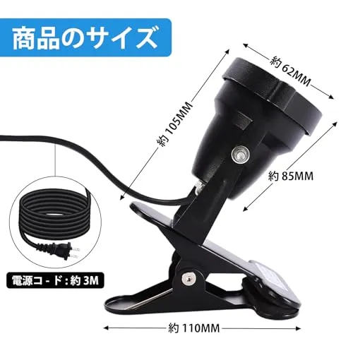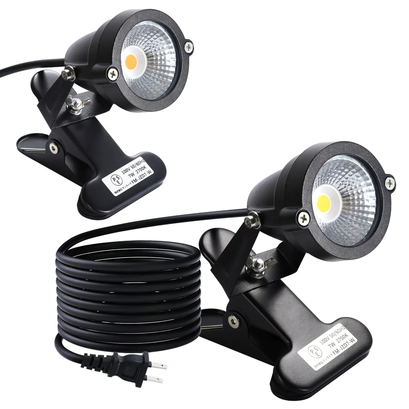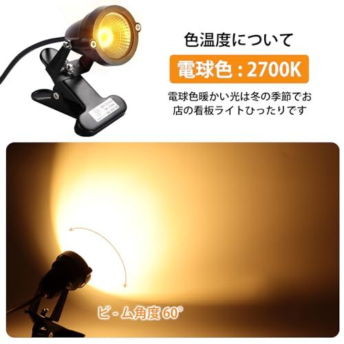 【最新モデル・PSE認証済】電圧:AC100V ( AC85/265V ) / 消費電力:7W / 色温度:2700K( 電球色 ) / 照射角度:60/ クリップくわえ幅 :約1080mm / 防水規格:IP65 / 電源コード:約3m ※付属品:六角レンチ2本
