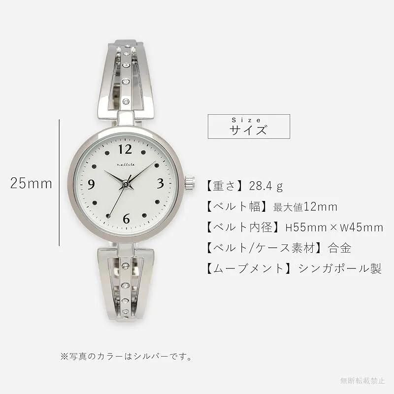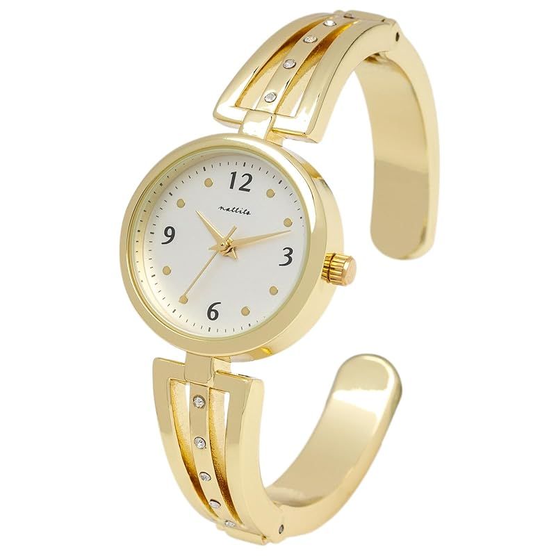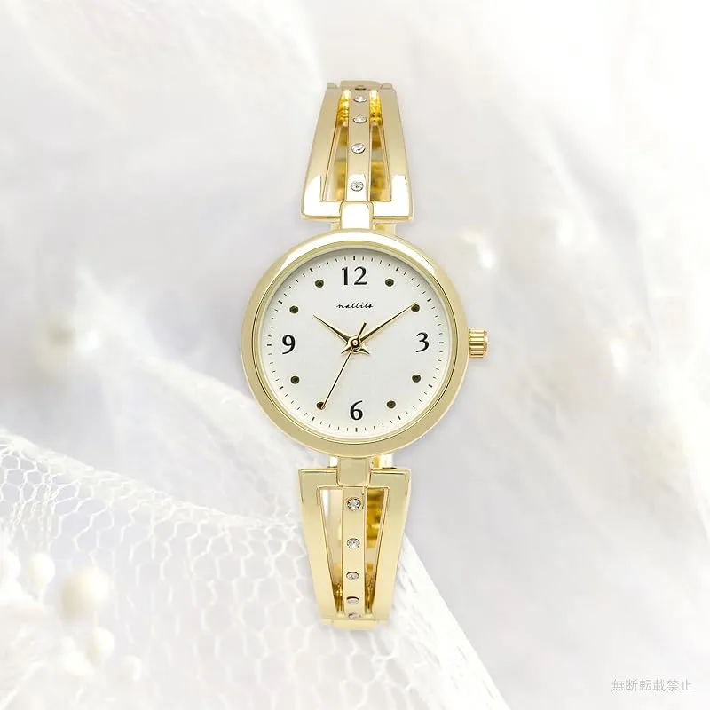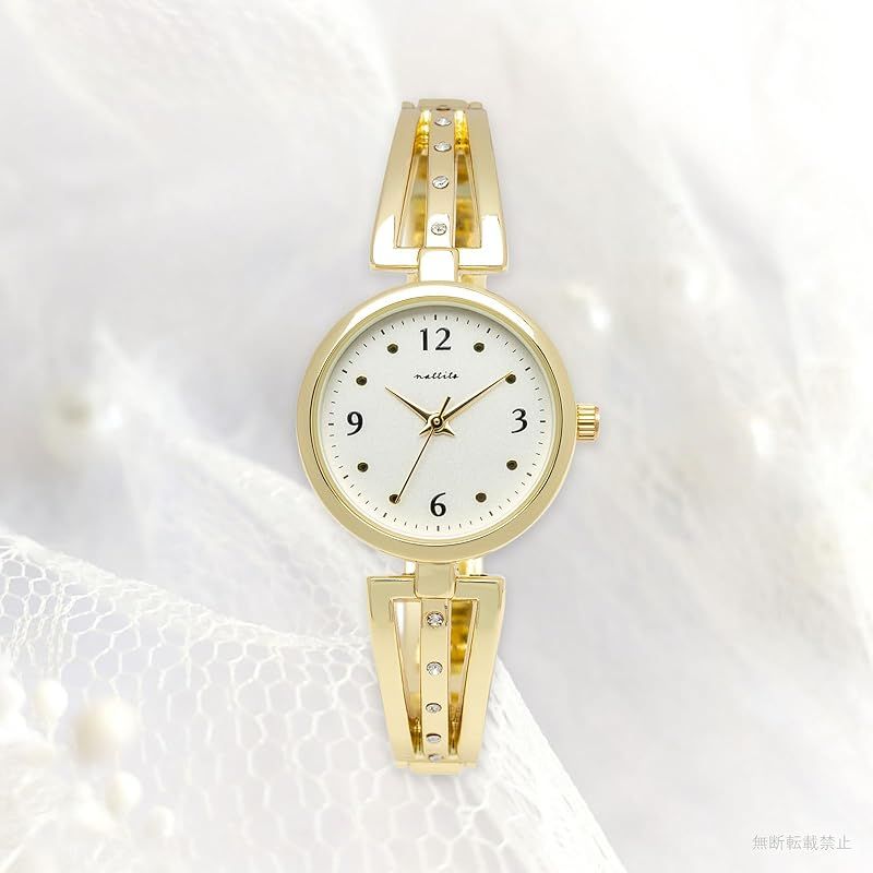 バンドにストーンがあしらわれた上品なバングルウォッチ